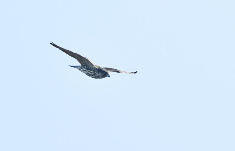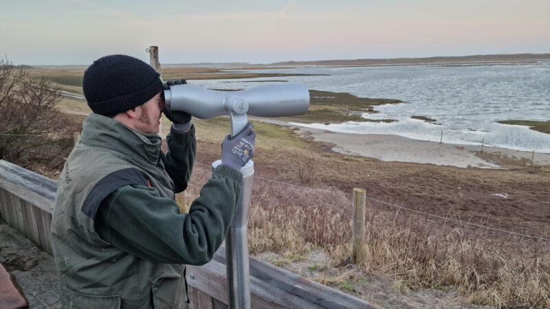 Donderdagochtend 1 februari stonden er met het licht worden al verschillende mensen te posten op het Vogelkijkpunt het Diepe Gat aan de noordzijde van De Slufter. Hier waren Edwin van Egmond en Jeroen van de Werf net bezig om een nieuwe permenente Swarovski Telescoop (ST Vista, geleverd door het Vogelinformatiecentrum) te plaatsen. Net op tijd want de telescoop zat net goed vast toen de giervalk zich kort, maar mooi liet zien. Later die ochtend werd de vogel prachtig gezien. Wim van Zwieten was de gelukkige die hele fraaie foto’s kon maken. Zo te zien was de vogel ongeringd en de vogel gedroeg zich schuw en wild (giervalken worden ook gehouden door valkeniers, maar die zijn meestal geringd, of kunnen wel eens tam gedrag vertonen).