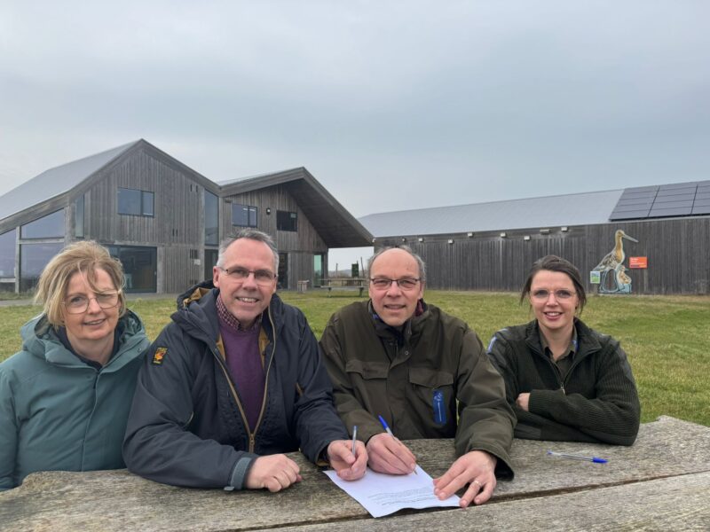 Natuurmonumenten en het Vogelinformatiecentrum Texel hebben hun samenwerking in Natuurcentrum De Marel verlengd met vijf jaar. Dat werd dit weekend bekrachtigd met het tekenen van een nieuw samenwerkingscontract – in koude omstandigheden met een straffe oostenwind. Directeur Jeroen de Koe tekende namens Natuurmonumenten en Marc Plomp namens het Vogelinformatiecentrum.
