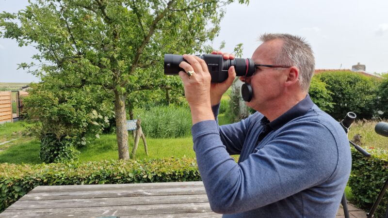 Het is echt wonderbaarlijk wat er dan gebeurt. Het beeld hangt in een fractie van een seconde echt heel stil en stabiel. Zelfs als je inzoomt naar de grootste vergroting, 35x, blijft het beeld erg stabiel. Deze telescoop is echt uit de hand te gebruiken. Dit heb ik nog niet eerder gehad. De stabilisatiesoftware is afkomstig uit de gimball-industrie (camera’s onder drone’s ed). De software is van de derde generatie en deze zorgt ervoor dat een aantal kinderziektes er al behoorlijk uit zijn. Veel verrekijkers hebben er last van dat het beeld bij pannen (van links naar rechts bewegen en vica versa) erg door kan deinen en dan terug kan deinen. Een beeld waar je snel een beetje duizelig van kan worden. Dit door deinen is bij deze stabilisator nauwelijks waar te nemen. Dit draagt bij een de bruikbaarheid. Met tilten (omhoog bewegen en naar beneden bewegen) heeft de stabilisator meer moeite om het beeld stabiel te houden. Maar ook hierbij is het al beter dan bij de meeste verrekijkers.