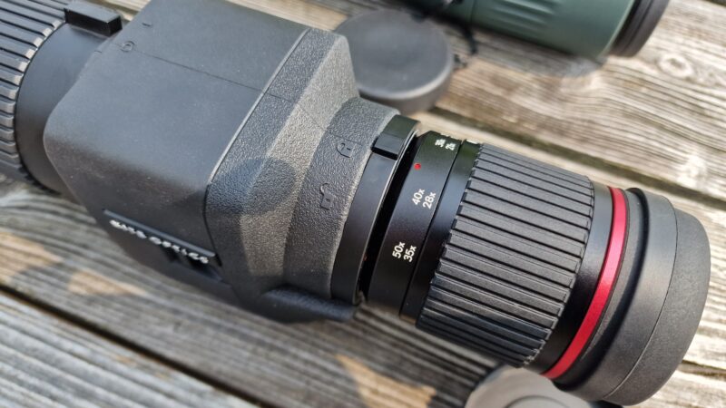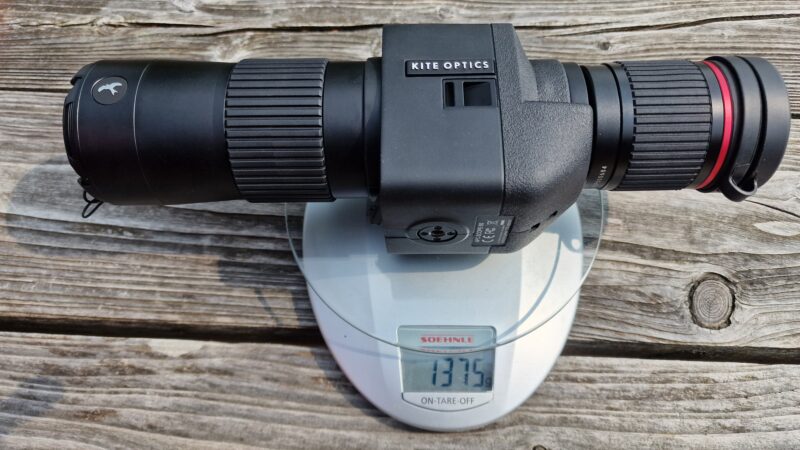 De Kite beeldkwaliteit is echt van een middenklasse. Dat is helemaal niet verkeerd (maar voor 2.300 euro verwacht je een beter beeld). Op het eerste gezicht is het beeld prima en scherp. Echter ga je meer op de details letten, dan valt op dat het sprankelende contrast wat je bij de Kowa en Swarovski ziet, ontbreekt. Ook is in een directe vergelijking de scherpte van de Kowa en Swarovski echt beter. Ook naar de randen toe zie je een behoorlijke grijszweem, zeker dicht aan de randen van het beeld. De oorzaak lijkt interne reflectie te zijn. Wellicht kunnen ze dat in latere productiemodellen nog verbeteren. De beeldbreedte die in theorie wordt opgegeven, geeft mij twijfels. Want die zou bijna net zo breed als de Swarovski en Kowa moeten zijn. Echter in de praktijk is dit beeld bij direct vergelijking circa 20% smaller. Dit geeft, zeker bij een hogere vergroting, toch een extra moeilijkheidsgraad met het vinden van je object, zeker uit de hand.