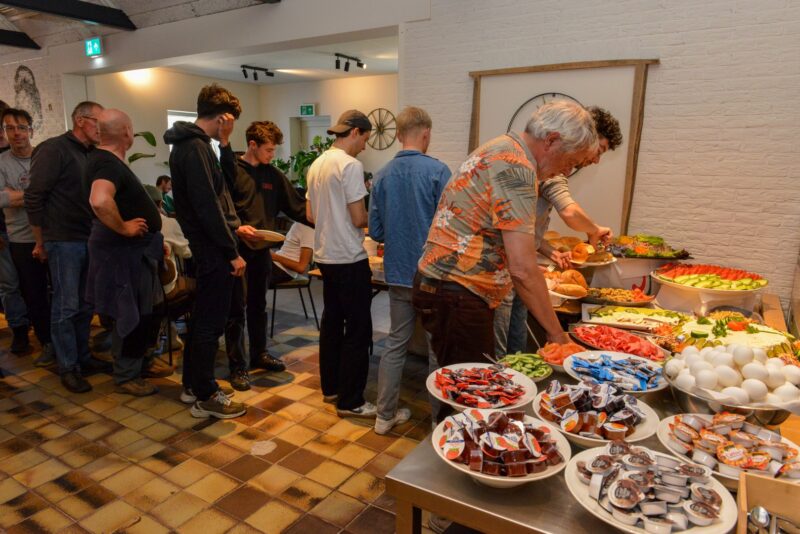 Jurylid Arend Wassink overpeinst het deelnemersveld tijdens het ontbijt op de zondagochtend.