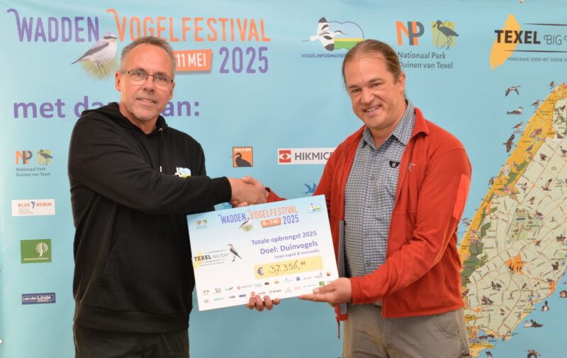 Texel was op 10 en 11 mei het decor van een zeer geslaagd Wadden Vogelfestival. Honderden vogelaars, natuurliefhebbers en gezinnen verzamelden zich op het eiland om samen vogels te kijken, deel te nemen aan excursies, de vogelaarsmarkt (Birdfair) in De Cocksdorp te bezoeken en mee te doen aan allerlei activiteiten. Alles stond in het teken van de bescherming van bedreigde duinvogels. Met een recordopbrengst van €37.356 voor de tapuit en de torenvalk werd het festival een groot succes.