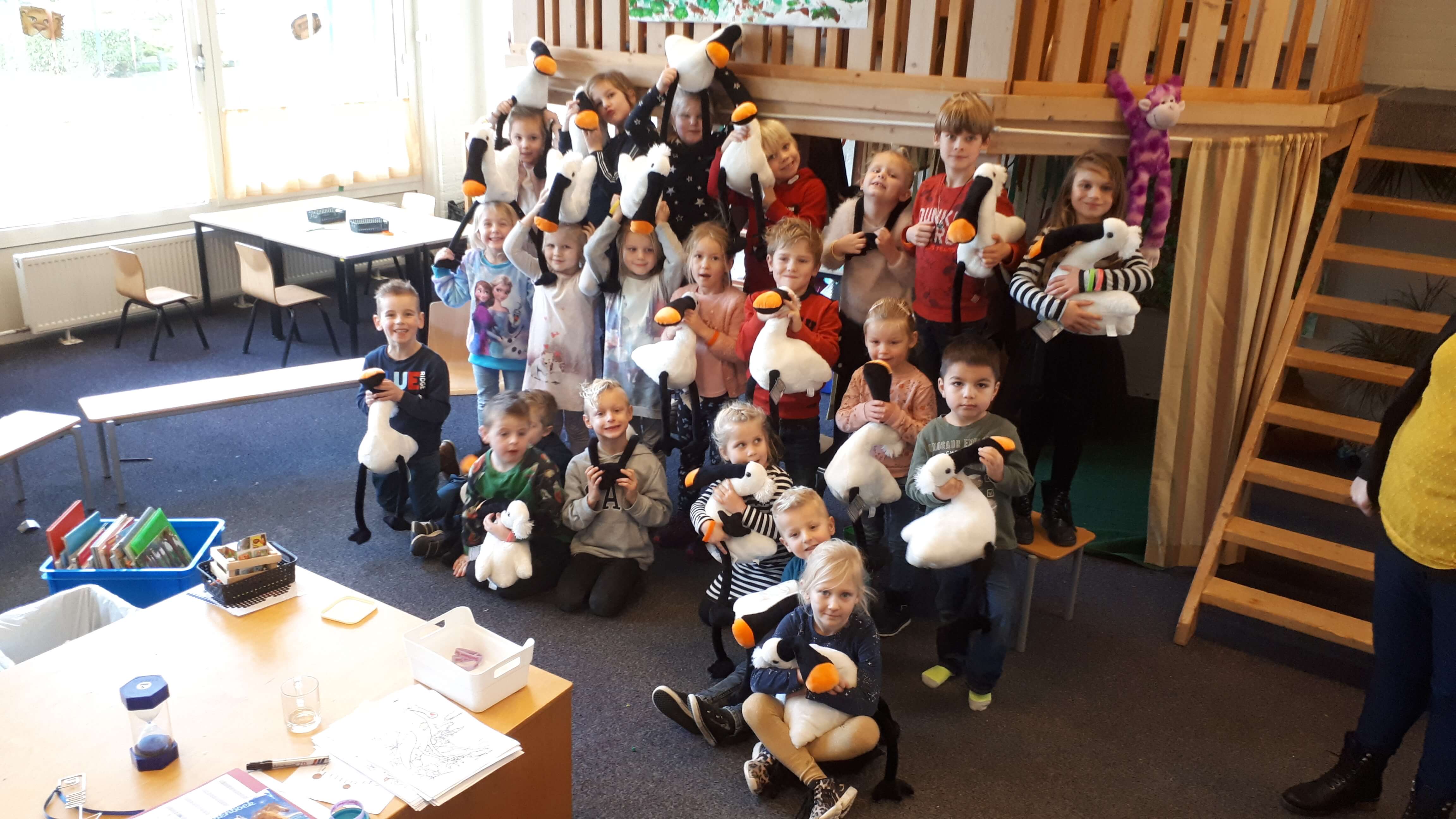 Speciaal voor dit project hebben we daarom een grote pluche lepelaar ontwikkeld met daaraan een kaartje met informatie over de lepelaar en Texel Vogeleiland. We hebben voor iedere leerling een lepelaar.