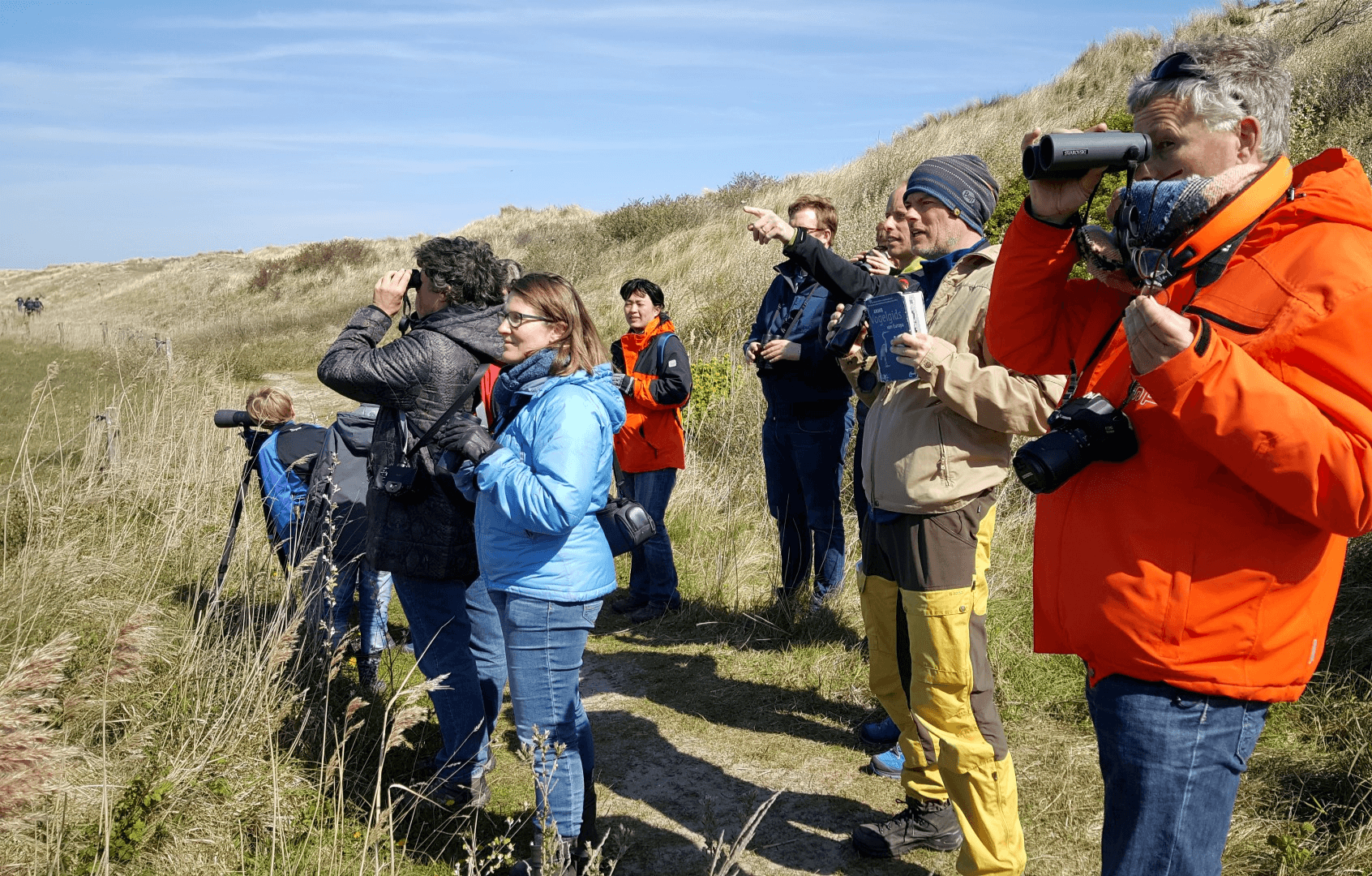 | Vogelexcursies voor het goede doel. Het gehele weekend, 10, 11 en 12 mei zijn er speciale vogelexcursies voor het goede doel Duinvogels. Je kan mee met onze vogelbus voor een excursie van 3 uur, maar je kan ook mee wandelen met Arjan Dwarshuis of Paul Böhre. U krijgt van ons een mooie verrekijker mee om de vogels goed te bekijken en de deskundige gids geeft u alle uitleg. Kijk hier voor alle vogelexcursies tijdens het Wadden Vogelfestival, reserveren kan hier ook. |