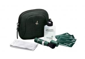 Neem altijd een schoonmaaksetje mee voor uw verrekijker. Zo’n setje bevat in elk geval een (blaas-) kwastje, schoonmaakvloeistof en een lens- of brillendoekje van microvezel.