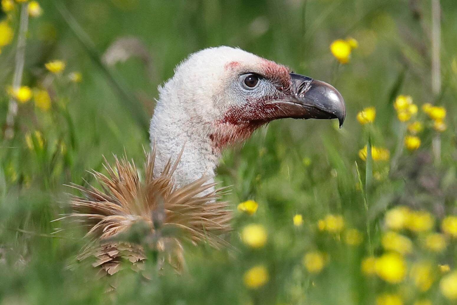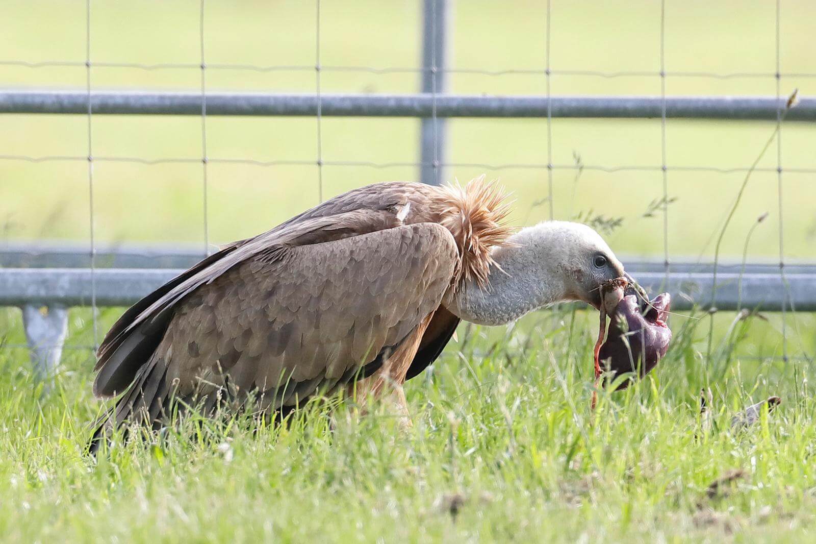 “In het begin joegen de koeien de gier weg, ze hebben nu kalfjes”, vertelt Alphine Bakker. “Zaterdagochtend vroeg werd er weer een kalfje geboren. Ik weet dat een gier een aaseter is, maar bij zo’n geboorte is er veel bloed, dus we zijn erbij geweest om het kalfje te beschermen, mocht dat nodig zijn.” De gier toonde geen interesse in het kalfje en bleef vooral bij de dode ganzen in de buurt.