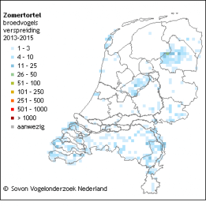 De zomertortel is wellicht één van de vogelsoorten die op dit moment het snelst achteruitgaat. Hadden we 15 jaar geleden nog talloze broedpaartjes op Texel, op dit moment zijn het aantal broedpaartjes op één hand te tellen. Wellicht dat er nog een paar bijkomen, want de zomertortel komt pas vrij laat terug uit het overwinteringsgebied in Afrika. Maar veel meer worden het er niet. De zomertortel is dus een duif om zuinig op te zijn.