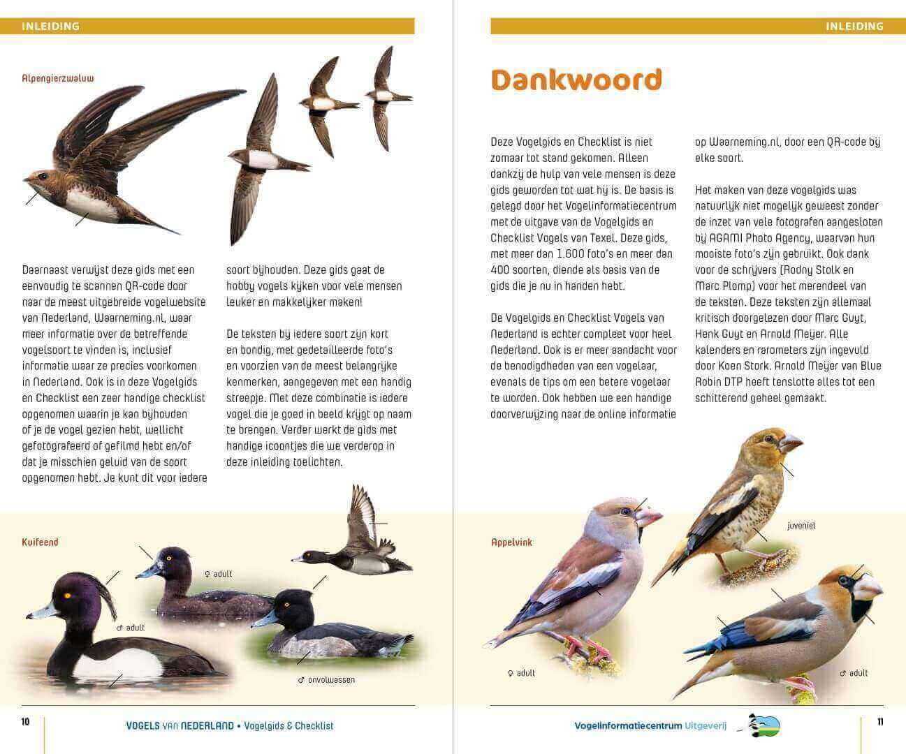Het ruim 400 pagina’s tellende boek in praktisch zakformaat behandelt meer dan 540 vogelsoorten die in Nederland waargenomen zijn. Ook een aantal exoten en hybride soorten worden in deze gids besproken.