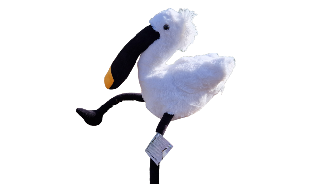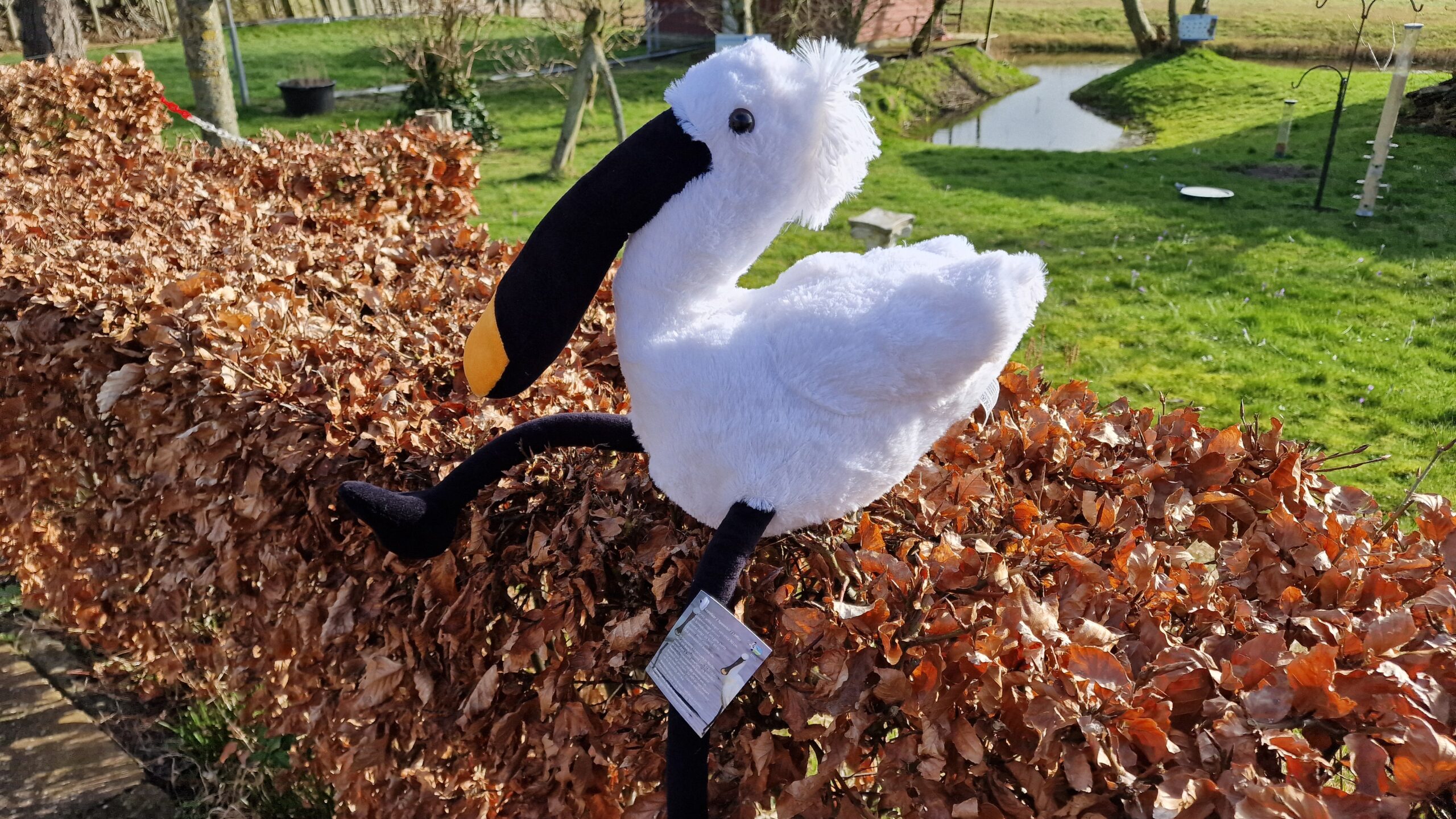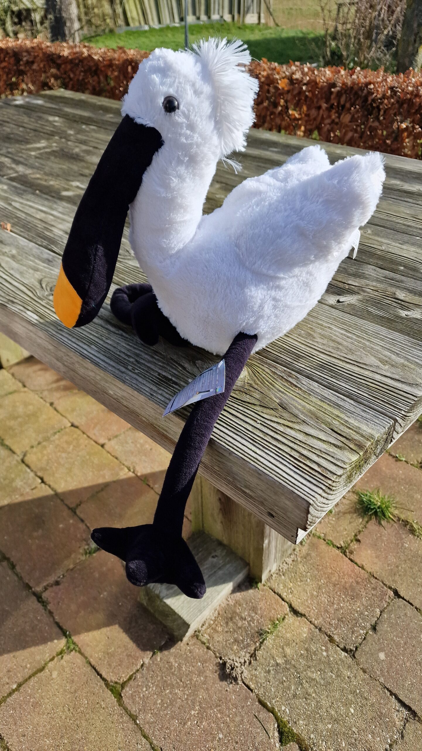 Deze lepelaar is van kop tot poten wel 60 cm lang en voelt heerlijk zacht aan.