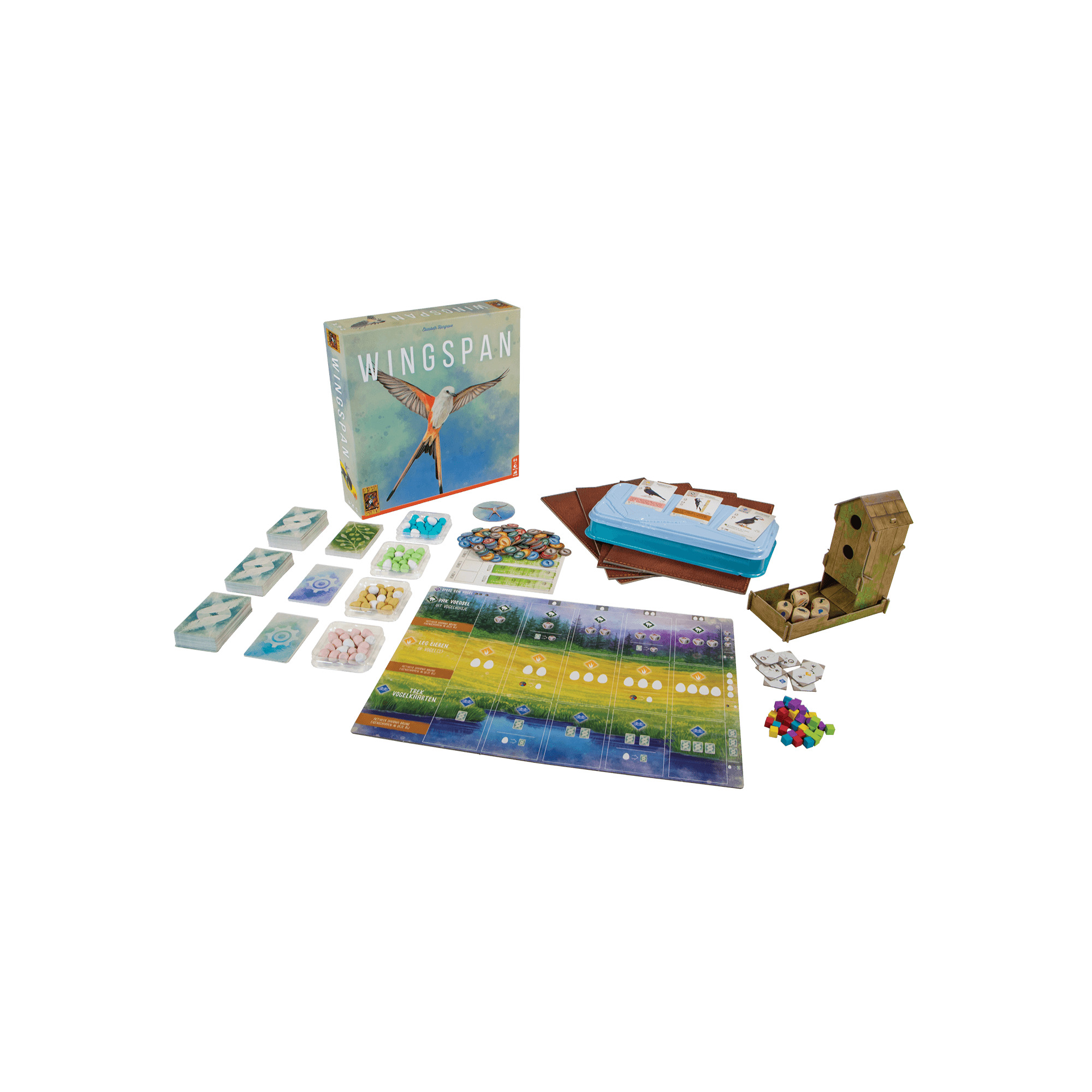 Wingspan: het populaire vogelspel vol tactiek en spanning. Nu ook in de Nederlandse versie. Als vogelliefhebber probeert iedere speler de beste leefomstandigheden voor de vogels in zijn opvangcentrum. te creëren. Elke vogel breidt in één van zijn leefgebieden een ketting van krachtige combinaties uit. Deze leefgebieden richten zich op verschillende groeifactoren: voedsel pakken, eieren leggen en nieuwe vogelkaarten trekken. Wie bouwt het beste actiemotortje en scoort aan het einde van het spel de meeste punten met zijn vogels?