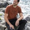 Iedereen die veel tijd in de buitenlucht doorbrengt, kent de waarde van comfortabele kleding. Dit T-shirt met ronde hals is gemaakt van 100% biologisch katoen en voelt zeer comfortabel aan. Het T-shirt is oranje gemêleerd en heeft een print van een bergketen met de tekst ‘For the love of nature’.