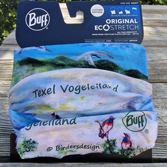 Deze Limited Edition Buff van Ecostretch is een zachte soepele Buff, met een speciaal gemaakte afbeelding van Texel Vogeleiland door een Texelse kunstenaar.