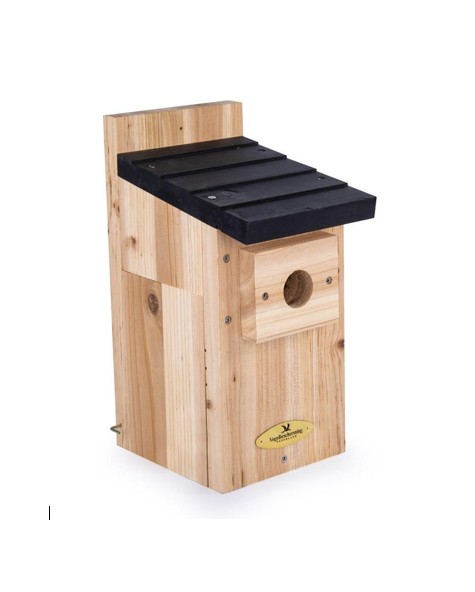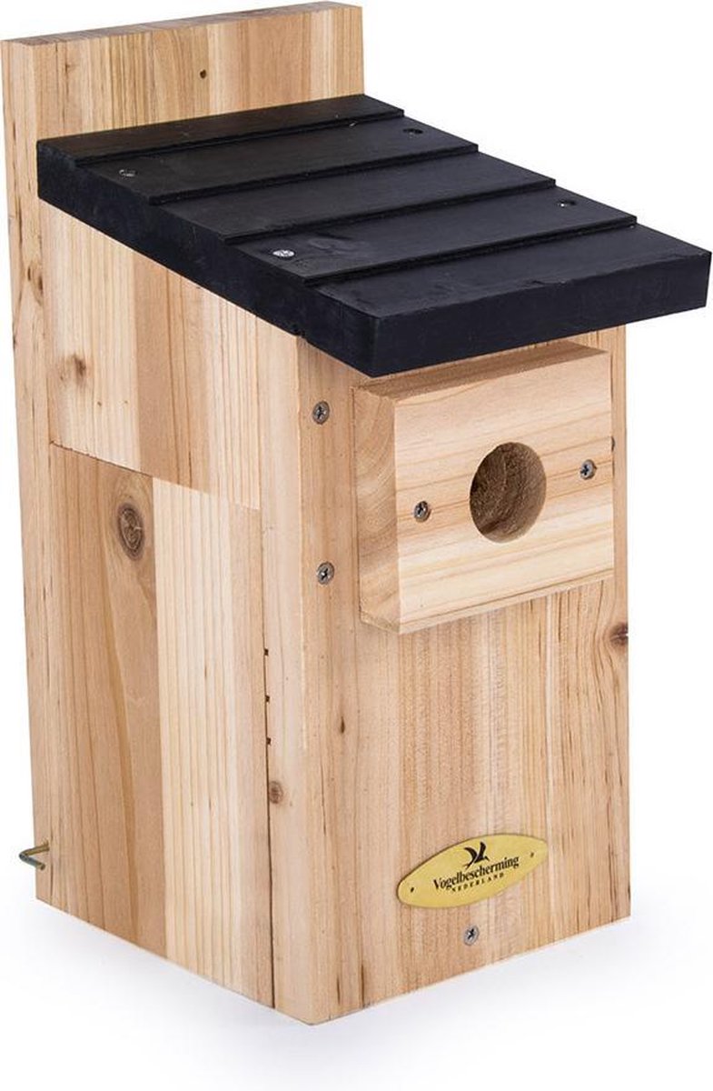 Het aantal natuurlijke broedplaatsen neemt af. Help vogels aan een geschikte nest- en schuilplaats door een nestkast op te hangen. De nestkast Herning is met een invliegopening van 28 mm geschikt voor kleinere mezen als de pimpelmees en de zwarte mees.