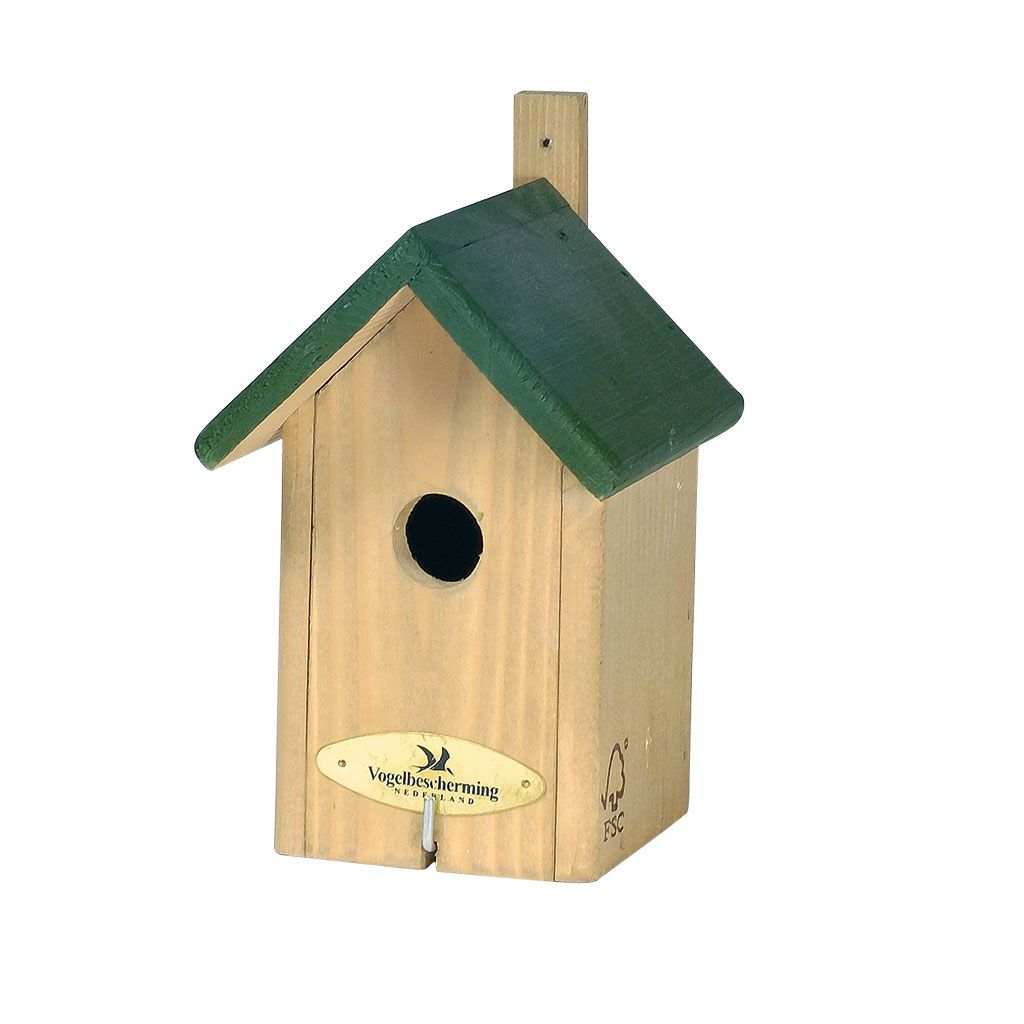 Dit kleine vogelhuisje biedt tuinvogels een veilig plekje in de tuin. De nestkast Little Rock is gemaakt van 100% FSC-gecertificeerd hout in een naturel bruine kleur met een groen dak. De invliegopening van 26mm maakt deze nestkast geschikt voor de winterkoning en kleine mezen. Het voorpaneel kan open, zodat je de nestkast makkelijk kunt schoonmaken voor een nieuwe bewoner. De Little Rock nestkast heeft een lengte van 12cm, een breedte van 11cm en een hoogte van 22cm. Hang de nestkast bij voorkeur op een lage hoogte tot 1,5 meter, in dichte begroeiing of onder dakranden, zodat de vogels een rustige en beschutte plek hebben.