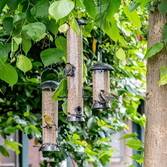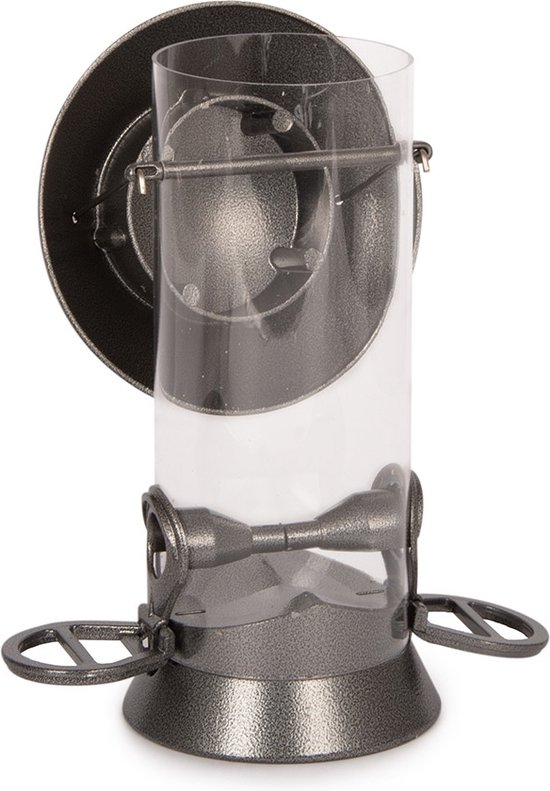 De diameter van deze nieuwe voedersilo’s is extra breed (8,5 cm) waardoor er meer voer in kan. Het deksel en de voederopeningen zijn gemaakt van aluminium en zijn donkergrijs van kleur. De opvangschaal kan onder deze Adventurer silo’s geschroefd worden. Niet te gebruiken in combinatie met silobeschermers.