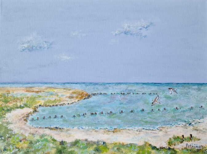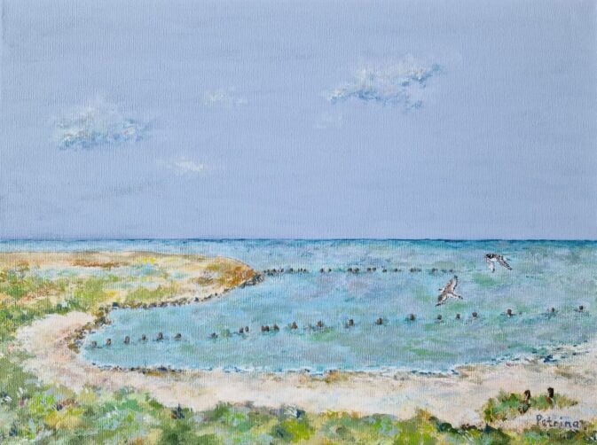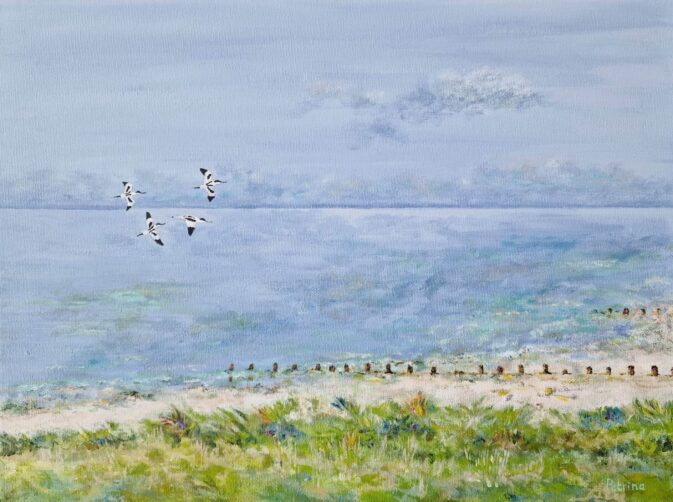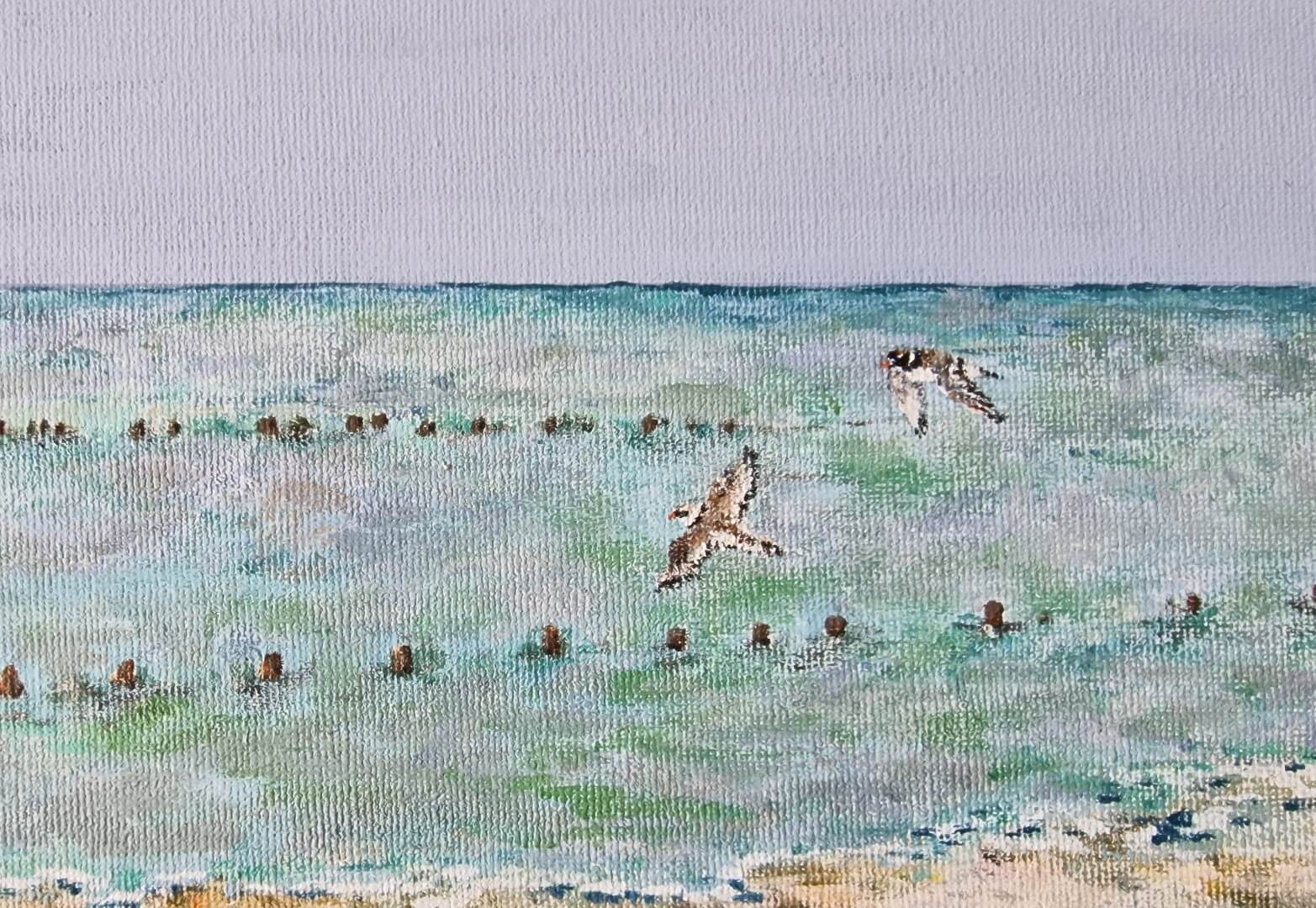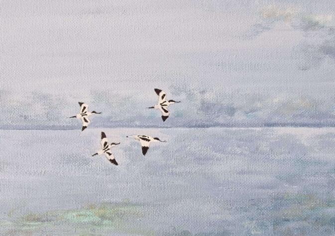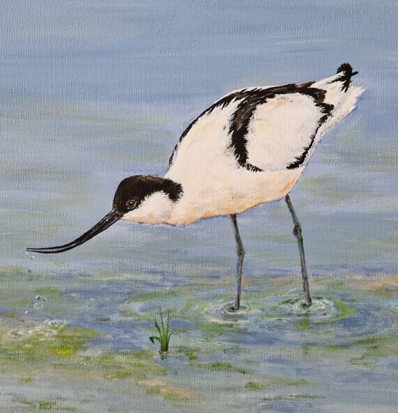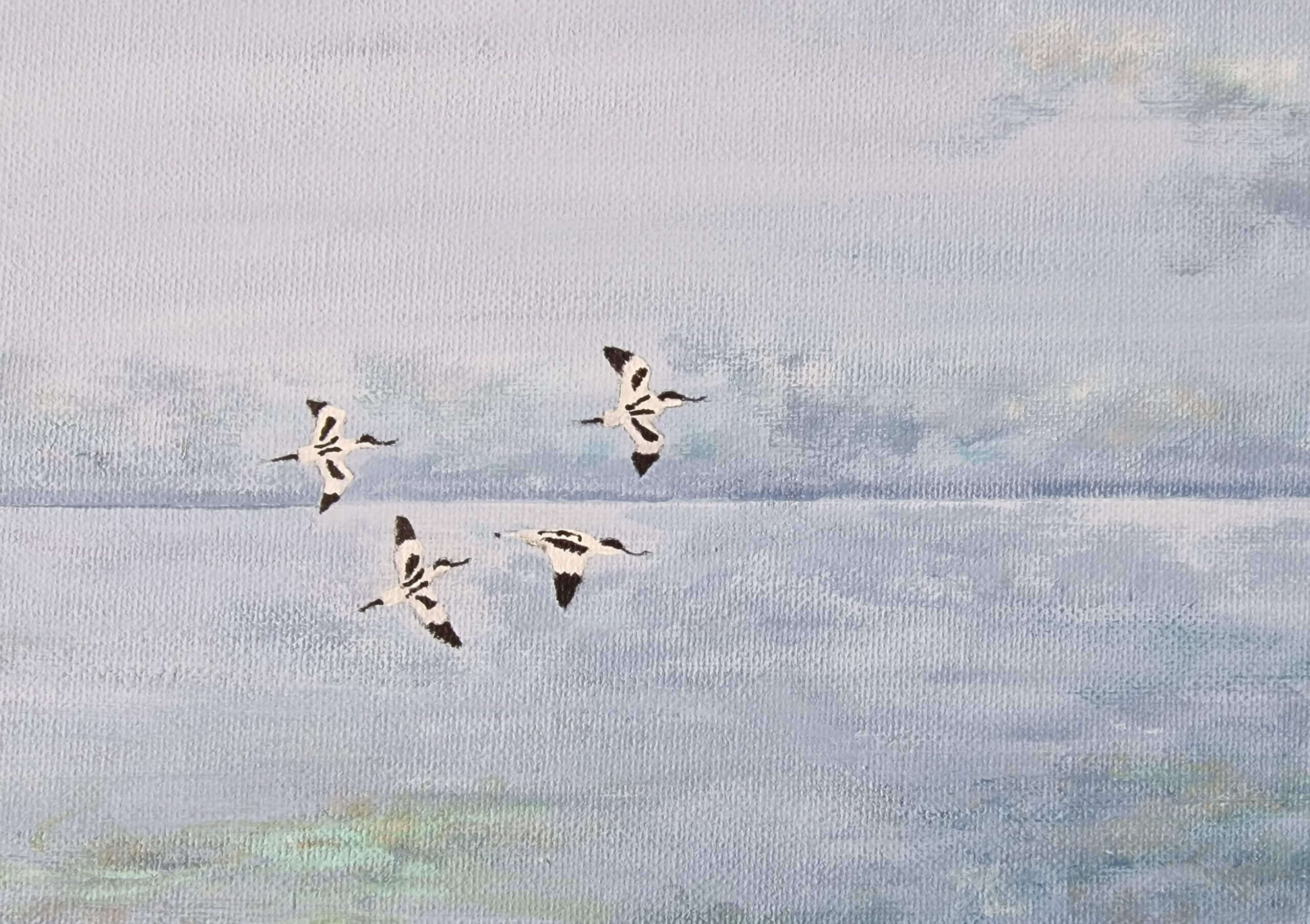 Petrina Groen, medewerkster bij het Vogelinformatiecentrum en in haar vrije tijd kunstenares, heeft speciaal voor het goede doel dit jaar vier verschillende schilderijen gemaakt. Alle vier de schilderijen zijn handgeschilderd met acryl op linnen. Van beide doelsoorten heeft ze een close up en een vliegbeeld gemaakt in beide gevallen met de Schorren op de achtergrond. De schilderijen hebben zijn alle vier 40 x 30 cm.